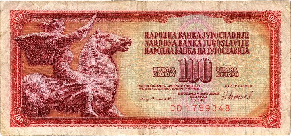 100 динар 1981 Югославия , (M09-0639)