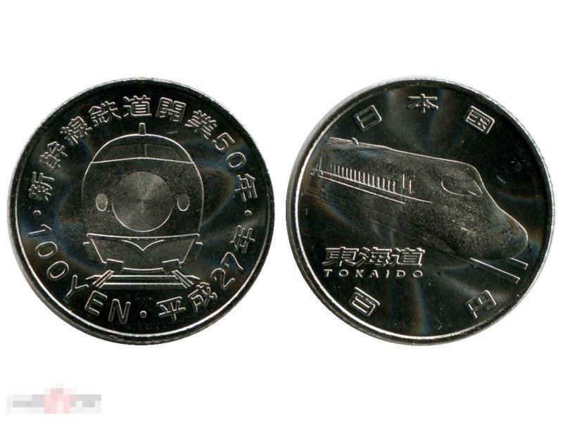 100 йен Японии 2015 года 50 лет скоростной железной