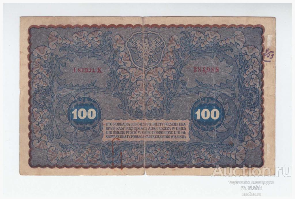 100 марок 1919 г. Польша.