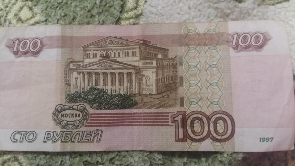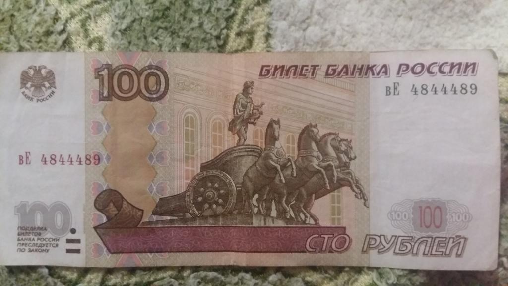 100 рублей 1997 года с модификацией 2004 года, с 4-мя четвёрками и с красивой периодичностью.