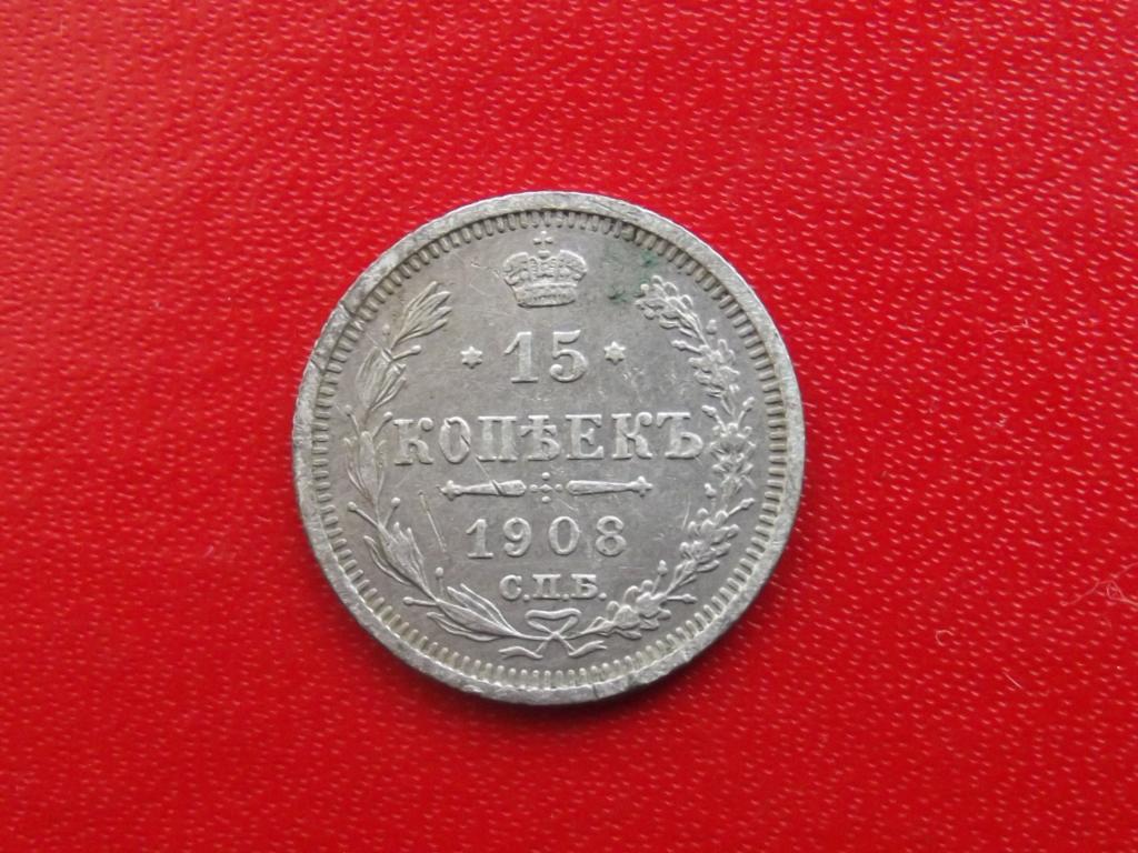15 копеек 1908 год СПБ ЭБ. Гарантия продавца, гарантия подленности.
