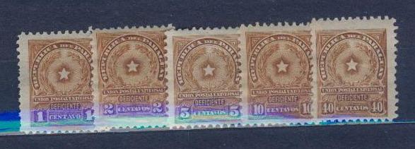 1914.ПАРАГВАЙ. ПОРТО. ЧИСТЫЕ,*, С КЛЕЕМ, C НАКЛЕЙКАМИ. СОСТОЯНИЕ ХОРОШЕЕ. МИХЕЛЬ №№ 5-8,10 porto. КАТАЛОЖНАЯ ЦЕНА - 2 ЕВРО. ПРОСЬБА УКАЗЫВАТЬ СВОЙ НИК, ПОЛНОЕ ИМЯ, №№ И НАЗВАНИЯ ЛОТОВ В ЭПОЧТЕ.