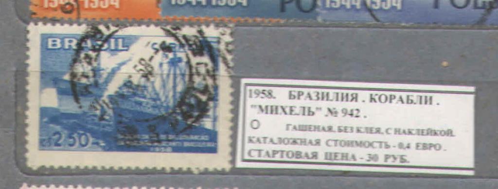 1958.Бразилия. КОРАБЛЬ. 130917Е2 Купите "1958.Бразилия. КОРАБЛЬ. 130917Е2" по цене 30a.