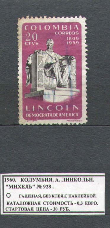 1960.Колумбия. А.ЛИНКОЛЬН. 070517Е2 Купите "1960.Колумбия. А.ЛИНКОЛЬН. 070517Е2" по цене 30a.