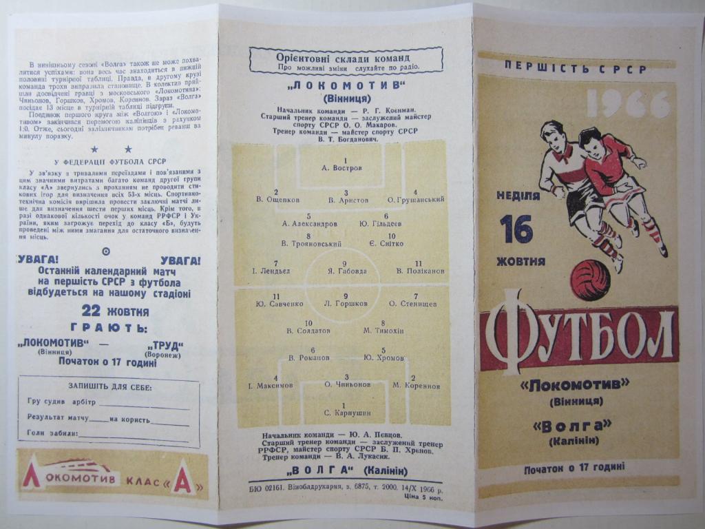 Купите "1966.Локомотив Винница-Волга Калинин" по цене 30a.Покупайте сейчас, чтобы не упустить эту отличную цену на “Auction.ru” или сделайте свое предложение продавцу.