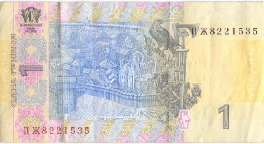 1 гривна 2011 Украина состояние среднее, банкнота из оборота.
