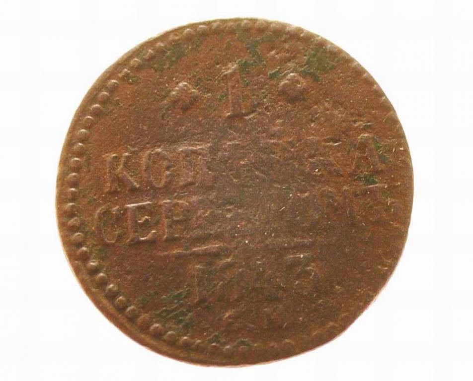 копейку, выпущенная в 1843 году, характеризуется точечным узором,