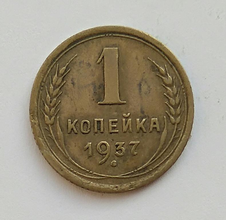 1 копейка 1937 год.Из ходячки.Сохран на фото.