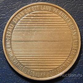 - 1 крона 2009г. SI EN AWJ «200 лет разделению Финляндии и Швеции» (Король Карл XVI Густав) - медно-никелевый сплав, диаметр: 25мм, вес: 7гр., гурт: ребристый.