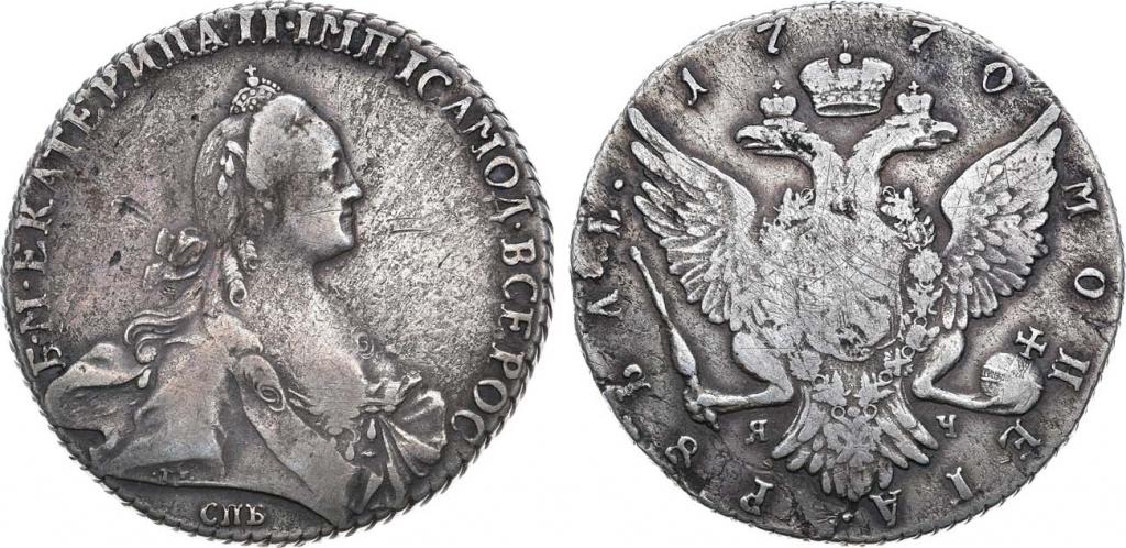 1 рубль 1770 г. СПБ-ТI-ЯЧ. Серебро. Вес: 24,36 г. Оригинал