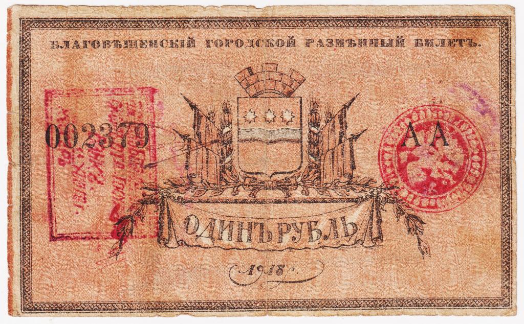 1 рубль 1918. Благовещенск. Городское самоуправление. С регистрацией