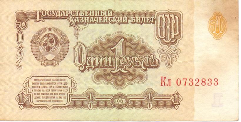 1 рубль 1961 Кл состояние хорошее, банкнота из оборота. Несколько перегибов. Пятнышко. Водяной знак влево.
