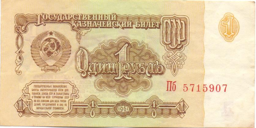 1 рубль 1961 Пб 5715907 состояние хорошее, банкнота из оборота. Водяной знак вправо.