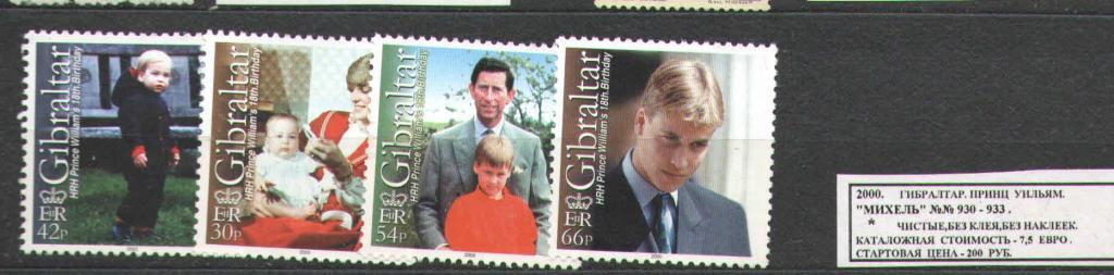 Купите "2000. Гибралтар. ПРИНЦ УИЛЬЯМ. 061216Е4" по цене 200a.Покупайте сейчас, чтобы не упустить эту отличную цену на “Auction.ru” или сделайте свое предложение продавцу.