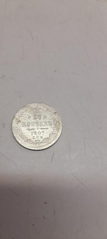 20 копеек 1907г. ЭБ. СЕРЕБРО, 100% подлинные !!! СОХРАН !!! Отправка по России почтой - заказным-150 руб. или 1-м классом-190 руб., при покупке нескольких лотов вы экономите на почтовых расходах, оплата на карту СБ