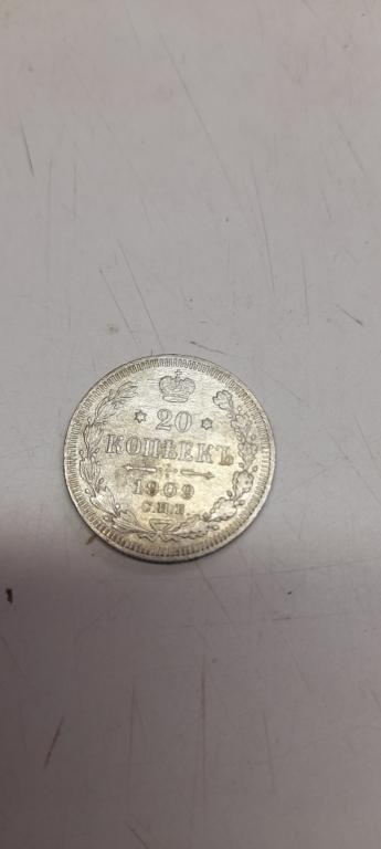 20 копеек 1909 г. ЭБ. СЕРЕБРО, 100% подлинные !!! СОХРАН !!! Отправка по России почтой - заказным-150 руб. или 1-м классом-190 руб., при покупке нескольких лотов вы экономите на почтовых расходах, оплата на карту СБ