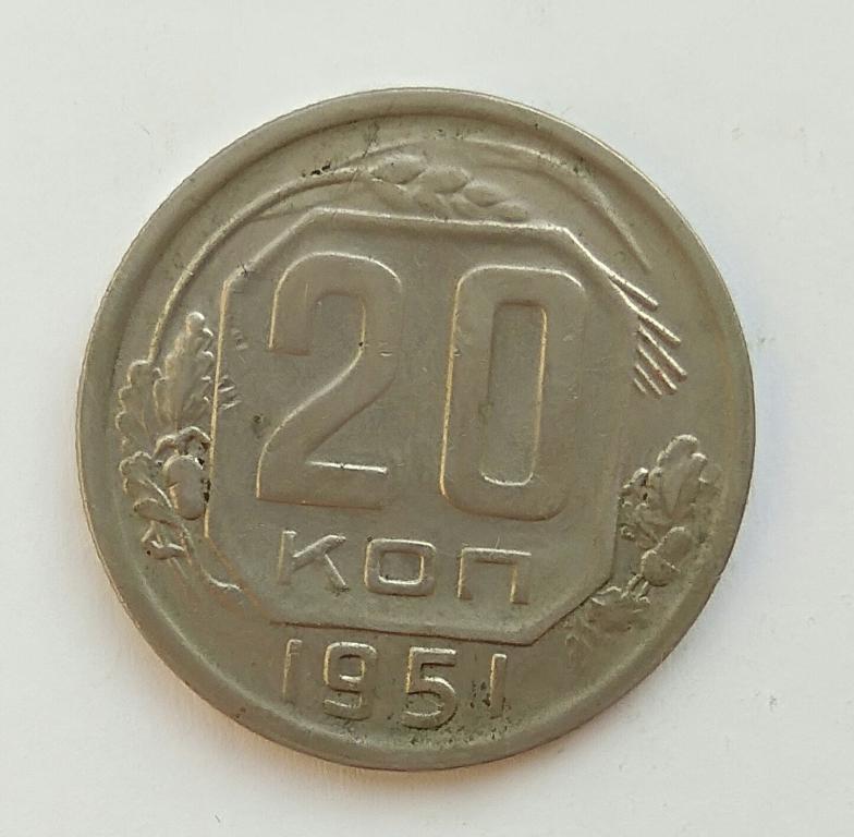20 копеек 1951 год,из ходячки.Сохран на фото.