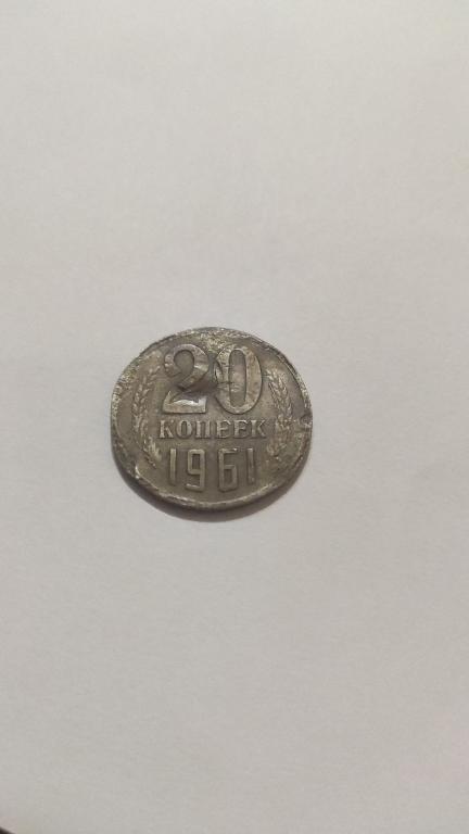 20 копеек 1961 года СССР, ленты вогнуты,состояние на фото