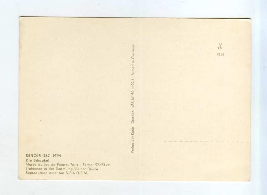 Открытка. Ниже можно посмотреть краткое описание на английском RENOIR Swing old postcard