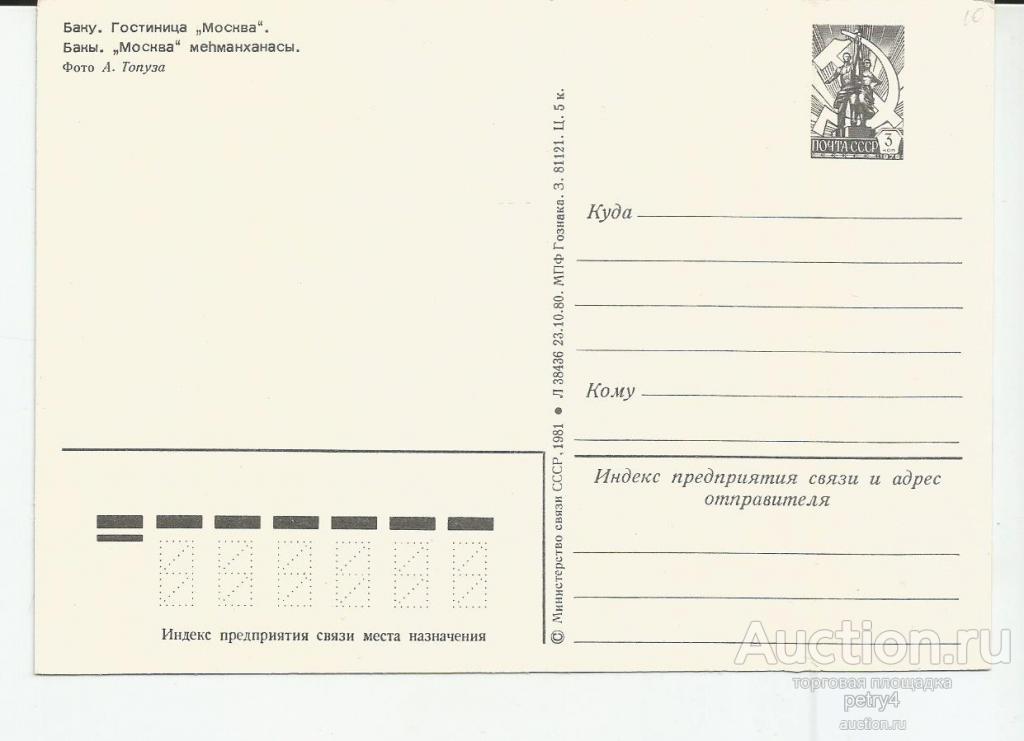 Купите "22058.Баку. Гостиница "Москва"." по цене 10a.Покупайте сейчас, чтобы не упустить эту отличную цену на “Auction.ru” или сделайте свое предложение продавцу.
