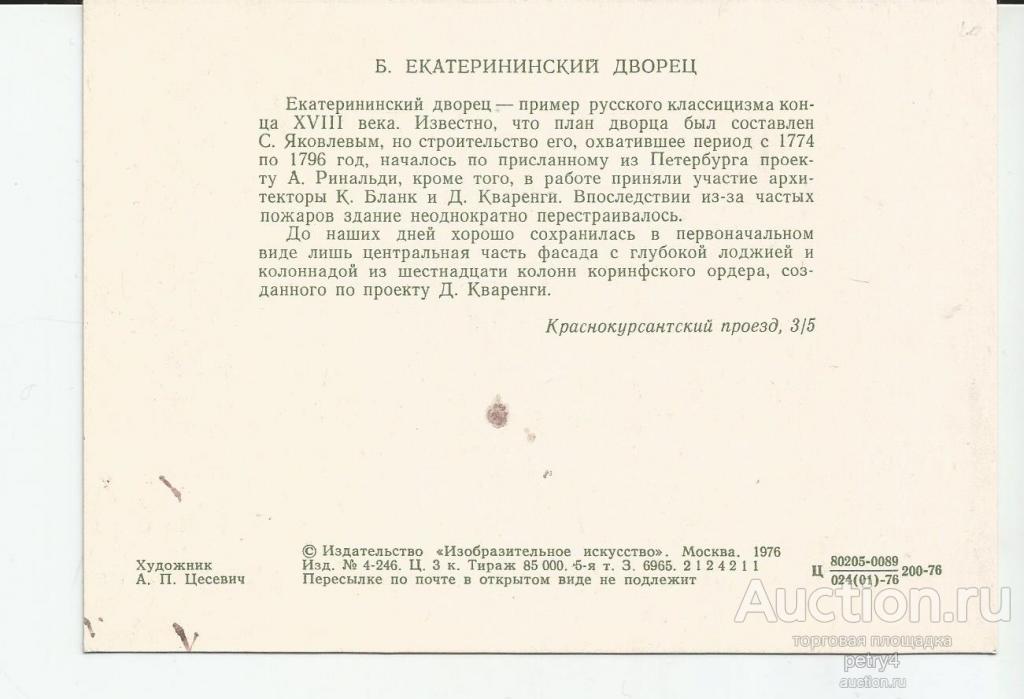 Купите "23851.Екатерининский проезд." по цене 10a.Покупайте сейчас, чтобы не упустить эту отличную цену на “Auction.ru” или сделайте свое предложение продавцу.