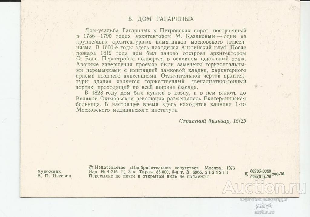 Купите "23856.Б.Дом Гагариных." по цене 10a.Покупайте сейчас, чтобы не упустить эту отличную цену на “Auction.ru” или сделайте свое предложение продавцу.