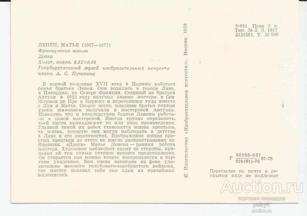 Купите "24407.Матье Ленен "Драка"" по цене 10a.Покупайте сейчас, чтобы не упустить эту отличную цену на “Auction.ru” или сделайте свое предложение продавцу.