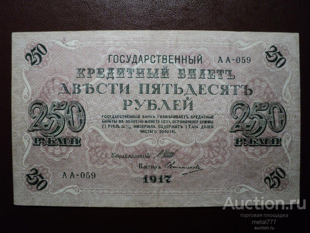 Купите "250 рублей 1917." по цене 361a.Покупайте сейчас, чтобы не упустить эту отличную цену на “Auction.ru”.