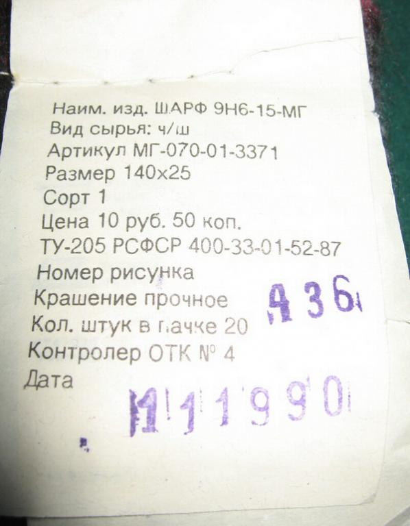 Состояние обоих – отличное, нет ни катышков, ни следов «обедов» моли. Оба новые, ни разу не надеванные, о чем свидетельствует пришитая к одному из шарфов бирка – см. фото. Оба – чистошерстяные.