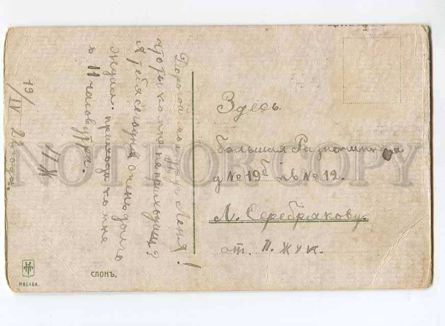 Послано 1922 год в петроград Большая Разночинная улица дом 19 квартира 12 Л. Серебрякову . Дореволюционная открытка в хорошем коллекционном состоянии. Ниже можно посмотреть краткое описание на английском Charming ELEPHANT Vintage colorful RPPC Sent from 1922 to Petrograd Bolshaya Raznochinnaya street house 19 apartment 12 L. Serebryakov. Russian Publisher. This vintage postcard has a bend of corner. The size is 3.4 x 5.6 (8.7 cm x 14.2 cm).