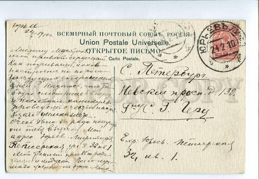 Postally used: yes - in 1910 year - Yuriev - St. Petersburg - Hertz.