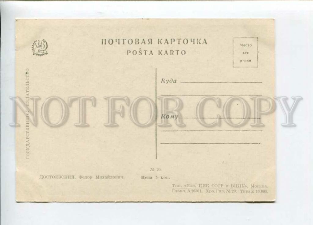 Открытка в хорошем коллекционном состоянии. Ниже можно посмотреть краткое описание на английском DOSTOEVSKY Great Russian WRITER vintage PC