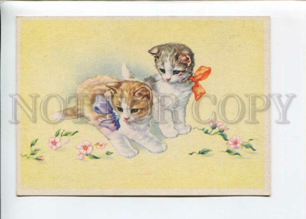 Открытка в хорошем коллекционном состоянии. Ниже можно посмотреть краткое описание на английском Lovely KITTENS w/ Flower Vintage Color PC