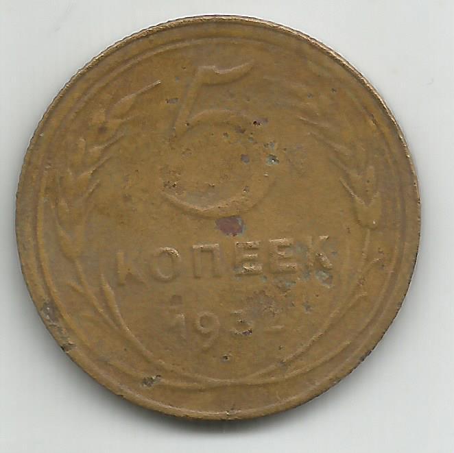 5 копеек 1932 год (238). Состояние на скане.