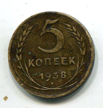 5 КОПЕЕК 1938 ГОД. СССР. 100% ОРИГИНАЛ!!! СОСТОЯНИЕ НА ФОТО!!! СМОТРИТЕ ДРУГИЕ МОИ ЛОТЫ ВСЕМ ЕСТЬ ЕЩЕ МОНЕТЫ УДАЧИ!!! При покупке до пяти монет отправка как за одну. отправка 1 класс 230 рублей.