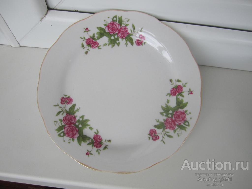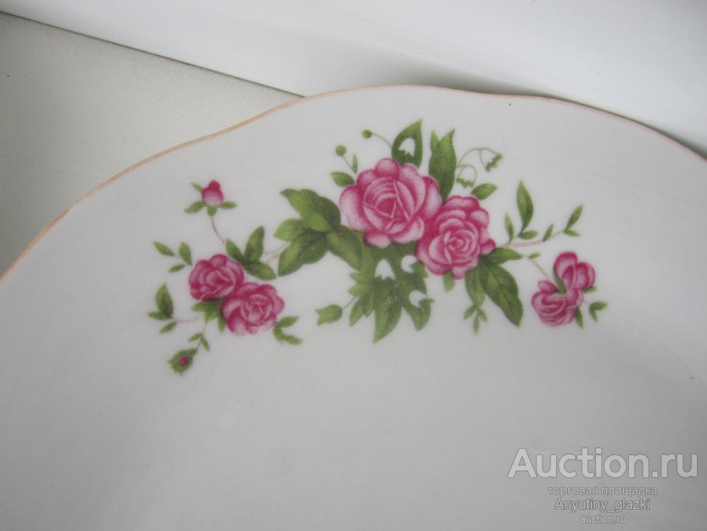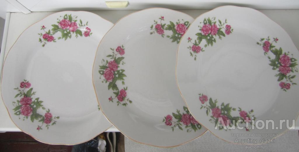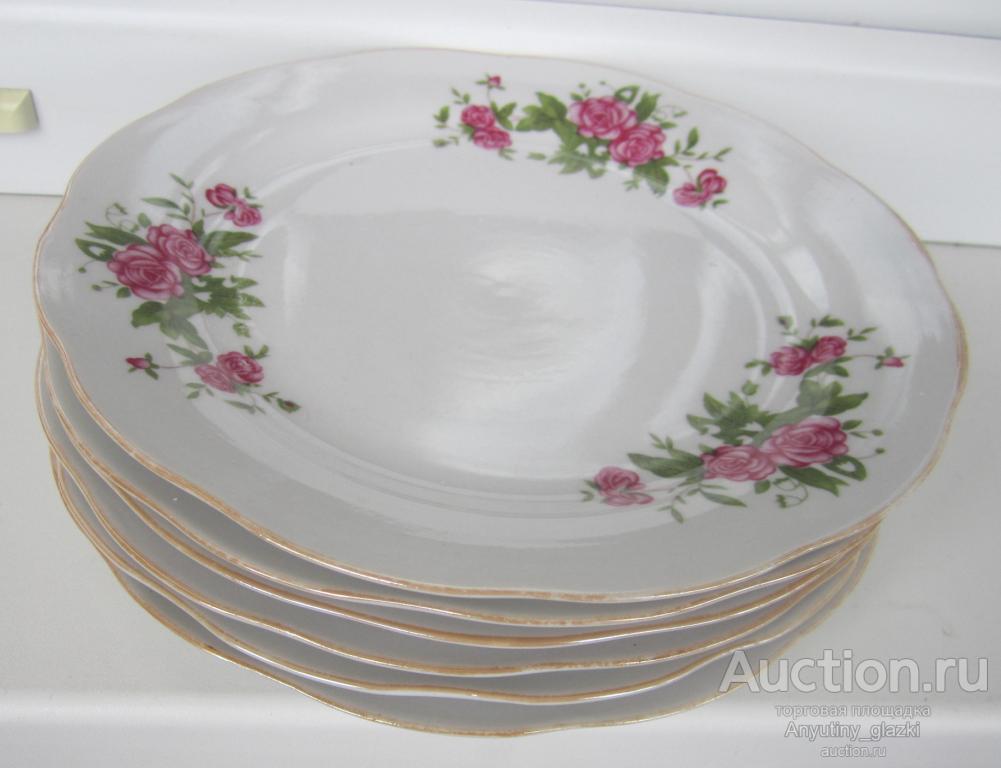 6 тарелок с розочками