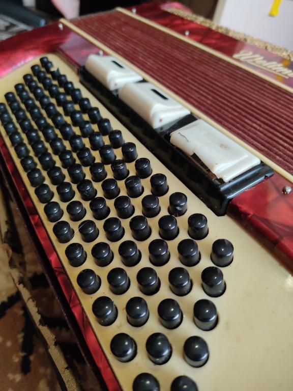 Аккордеон рабочий. Привезли из Белоруссии .Пролежал много лет без дела. Чехол развалился. Залипают две клавиши с регистрами.