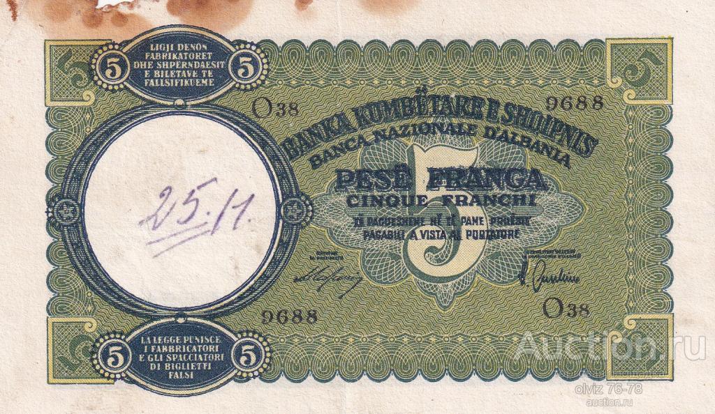 Албания 5 франков 1939 Купите "Албания 5 франков 1939" по цене 700a.