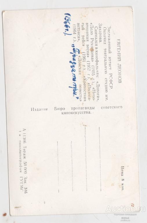 Купите "Артист кино Евгений Леонов" по цене 10a.Покупайте сейчас, чтобы не упустить эту отличную цену на “Auction.ru” или сделайте свое предложение продавцу.