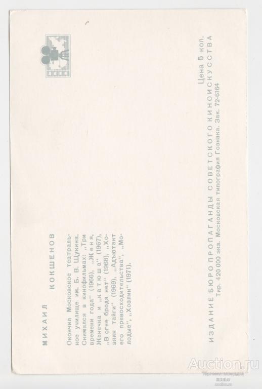 Купите "Артист кино Михаил Кокшенов" по цене 10a.Покупайте сейчас, чтобы не упустить эту отличную цену на “Auction.ru” или сделайте свое предложение продавцу.