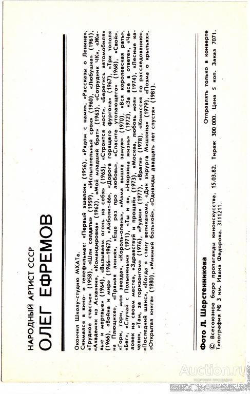 Купите "Артист кино Олег Ефремов." по цене 10a.Покупайте сейчас, чтобы не упустить эту отличную цену на “Auction.ru” или сделайте свое предложение продавцу.