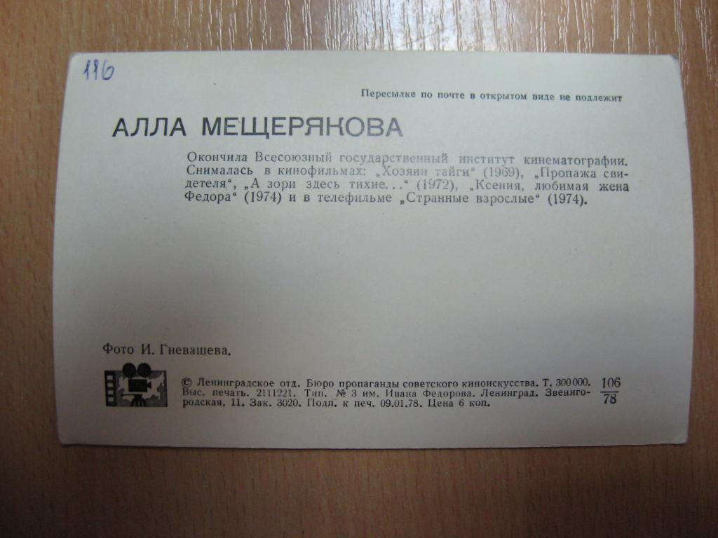 Артисты кино Алла Мещерякова АР