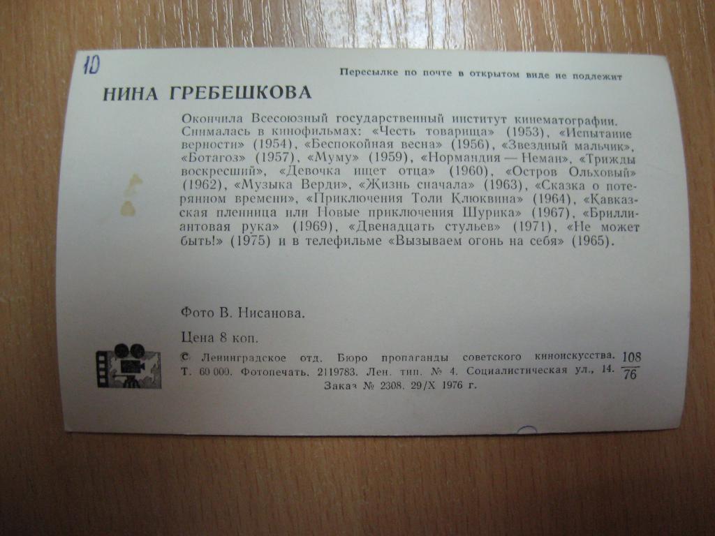 Артисты кино Нина Гребешкова АР