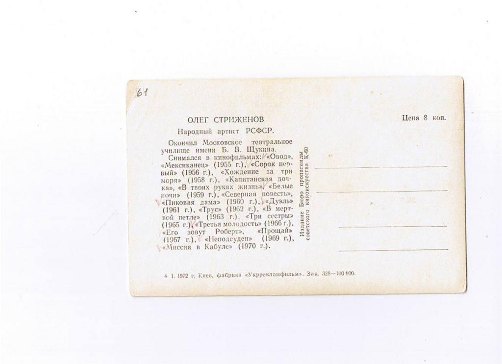 Артисты кино. Олег Стриженов . Д