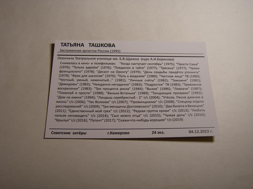 Артисты Кино. Татьяна Ташкова. Купите "Артисты Кино. Татьяна Ташкова." по цене 40a.