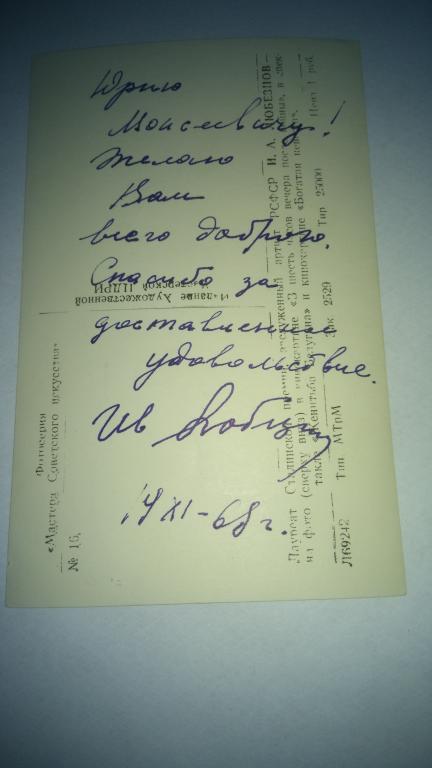 открытка с автографом Ивана Любезнова.