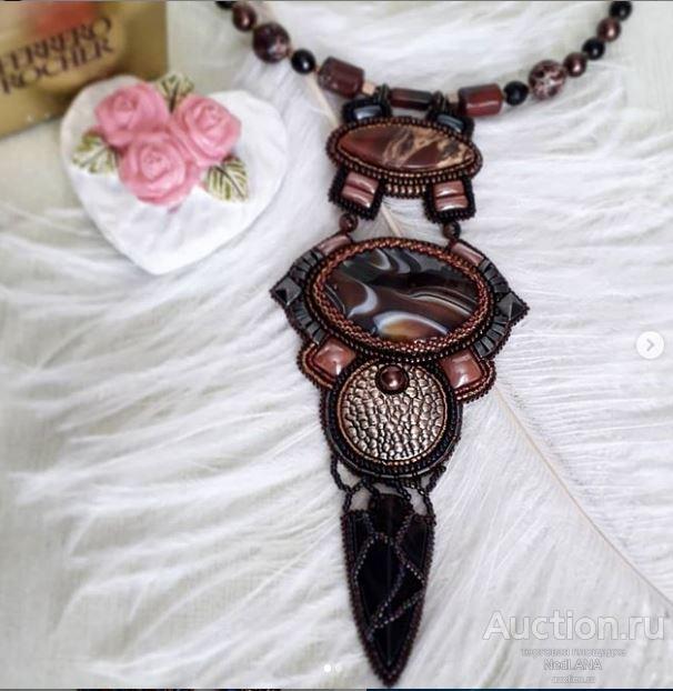 подвеска в технике вышивка бисером+ натуральные камни.