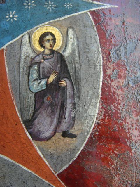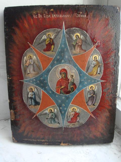 Неопалимая купина плюс серебряная басма.Икона 31х25см,басма 32х27см.Вес басмы 223 гр остатки позолоты,возможно басма времен Екатерины великой,хотя такие басмы изготавливали в 1820 гг.Икона шедевр,написана на языках пламени.