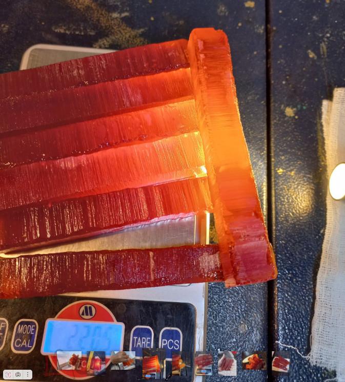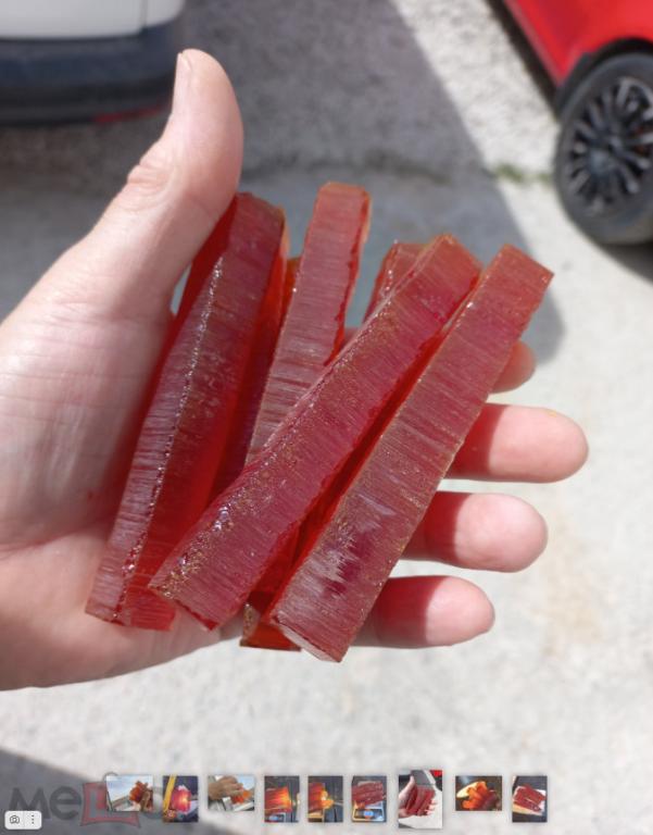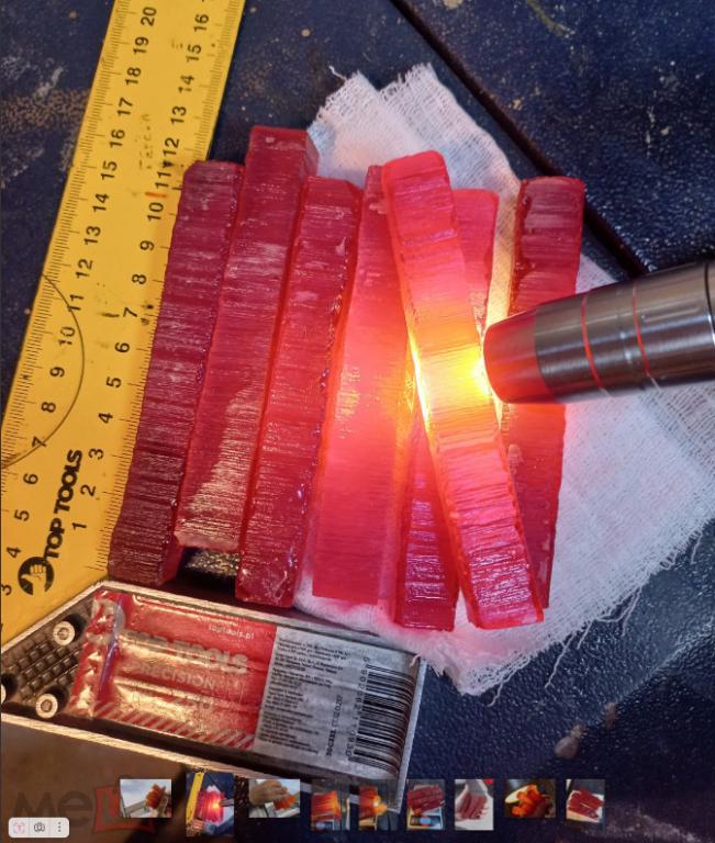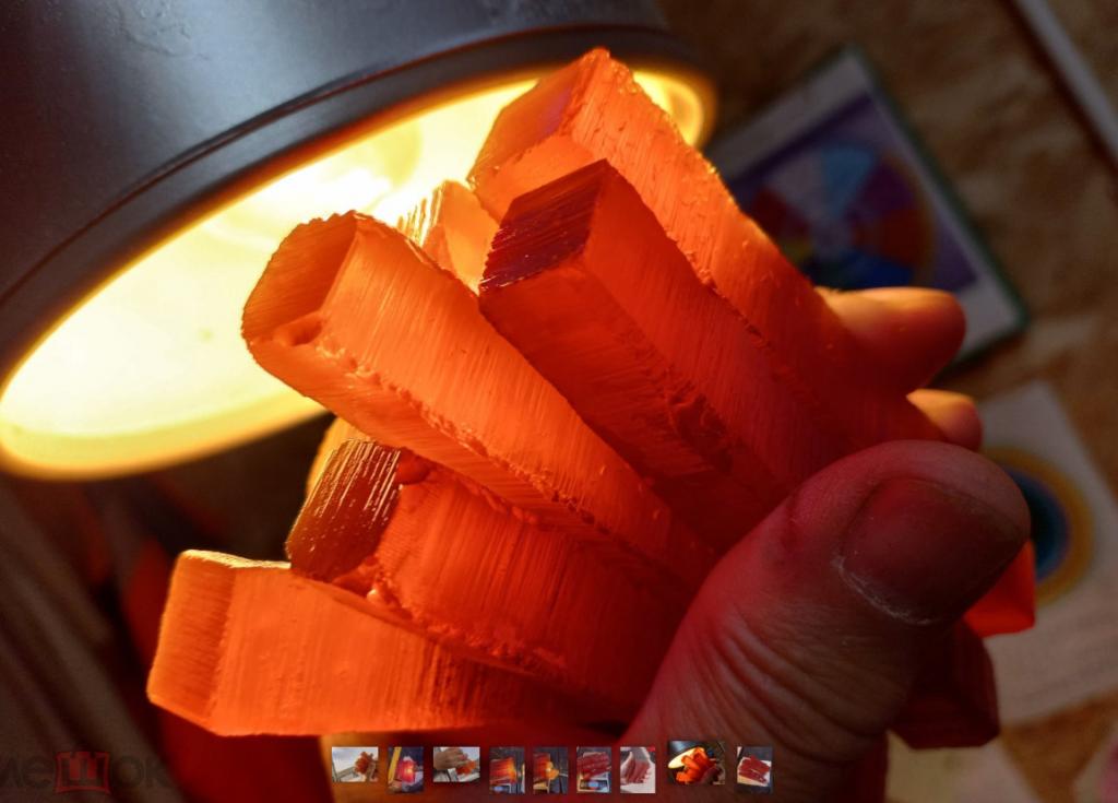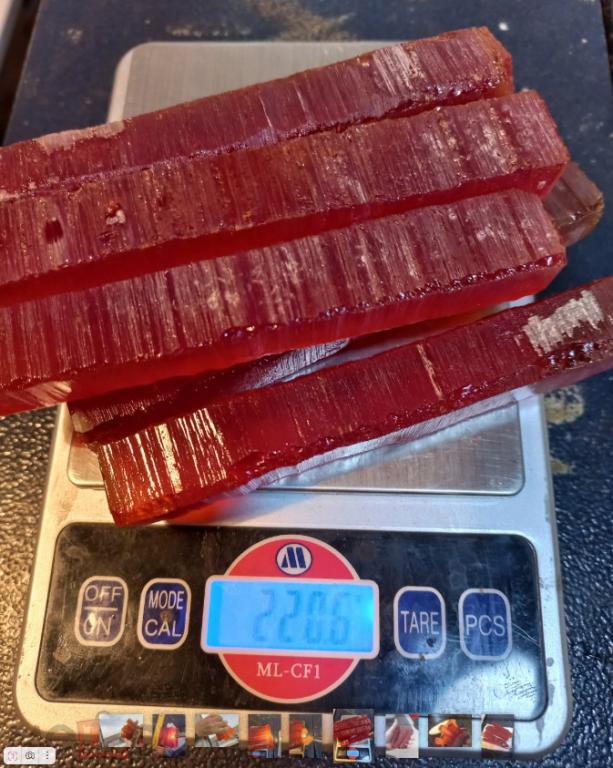 Бакелит ЧАЙНОГО цвета насыщенного. Матовый (полу-прозрачный), по цене - 5 рублей за грамм (пол-цены от обычного). Без наполнителей. На просвет почти непрозрачен если просвечивать фонариком. 7 брусков общим весом - 197 грамм. Сечение брусков примерно 14 на 14 мм (+- 1 мм). Длина 109 мм. Внутри есть трещины местами, поэтому отдаю в пол-цены от обычной. Прекрасный материал для изготовления ВИНТАЖНЫХ изделий - чёток, брошей, браслетов, бус, пуговиц. Со временем становится на поверхности вишнёво-бордовым, сам темнеет немного с годами. Купите - подскажу как быстро состаривать - за сутки-двое. Старится только ПОВЕРХНОСТЬ. Сам бакелит внутри остаётся тем же. Обычно это происходит за 10 -15 лет. Отлично шлифуется, сверлится, полируется. Лучший материал для бижутерии. 100% фенол-фрмальдегид. Никаких добавок.