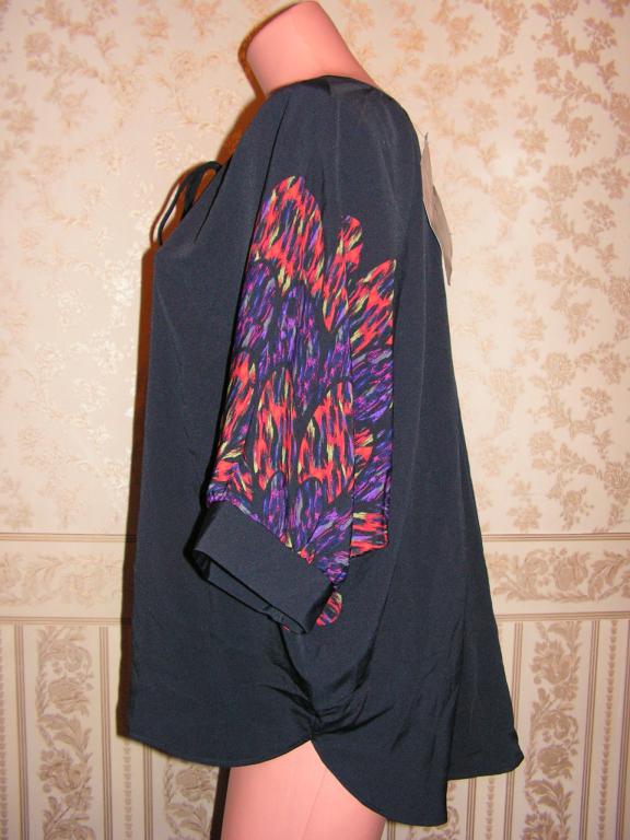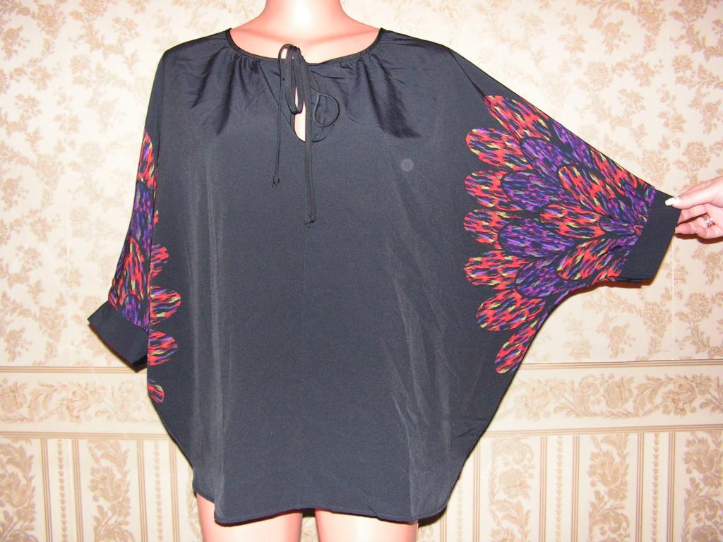 БЛУЗА НОВАЯ С ЦЕННИКОМ ПРОИЗВОДСТВА С.Ш.А. ОЧЕНЬ ХОРОШЕГО КАЧЕСТВА И БОЛЬШОЙ РАЗМЕР - НА ЧЕРНОМ ФОНЕ РИСУНОК ЖАР ПТИЦЫ ЗАДНЯЯ ЧАСТЬ НЕМНОГО ДЛИНЕЕ , НА МАНЖЕТАХ , НА ЗАВЯЗКАХ .ДЛИНА БЛУЗЫ - 73СМ, ДЛИНА РУКАВ - 46СМ, ОБЪЕМ ГРУДИ - 156СМ. |